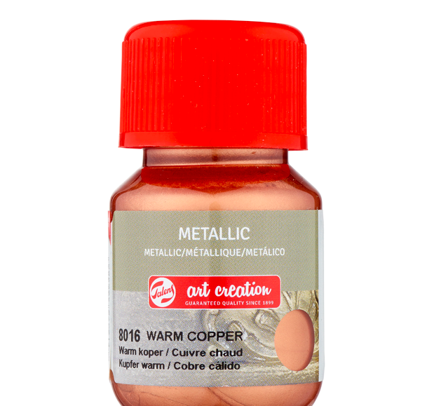 Швидковисихаюча металева фарба з часом висихання приблизно 10 хвилин. Металізована фарба підходить майже для будь-якої поверхні: паперу, стиропору, дерева, штукатурки, пластику тощо. Кремоподібна консистенція робить її придатною навіть для найдрібніших деталей. Переконайтеся, що поверхня чиста, суха та знежирена. Водостійка після висихання. Тільки для використання всередині приміщень. Наносьте фарбу пензлем (після використання промийте пензель теплою водою).