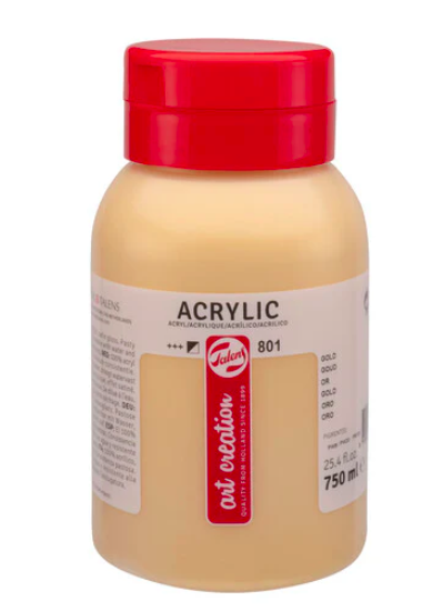 Ця акрилова фарба кольору Золотий (801) є напівпрозорою з чудовою світлостійкістю (+++).