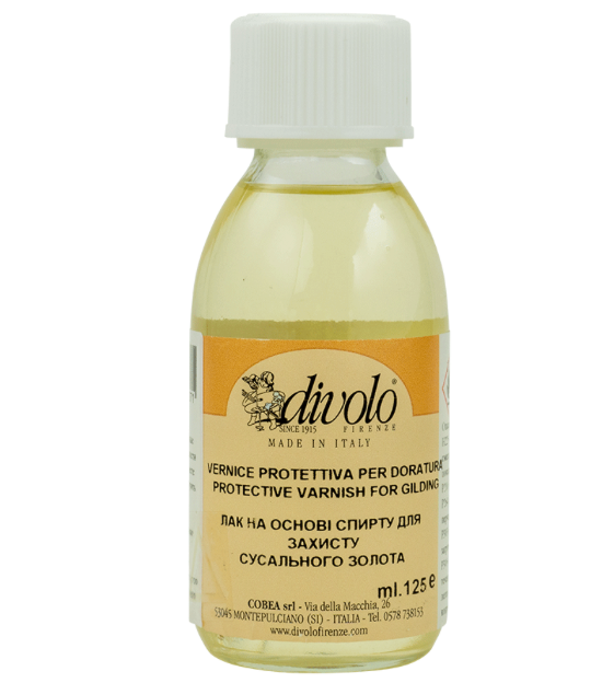 Захисний лак для золочення – це спиртовий розчин синтетичних смол, рідкої консистенції. Рекомендується використовувати на поталі для захисту від пошкоджень з часом. Його можна наносити пензлем або розпилювачем.