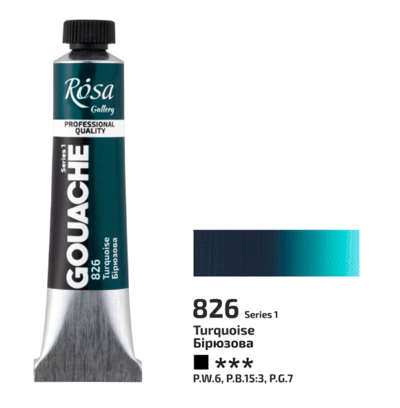 - Виготовлені на основі гуміарабіку, гуашеві фарби ROSA Gallery вирізняються чистотою кольору та легким рівномірним рознесенням.