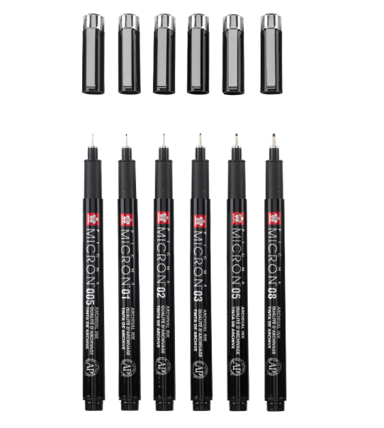 Sakura PIGMA Micron — це професійні лінери з мікропігментним чорнилом, які створені для точності, довговічності та бездоганного письма. Чорнила на водній основі не розмазуються, стійкі до води й світла, не протікають навіть крізь тонкий папір.