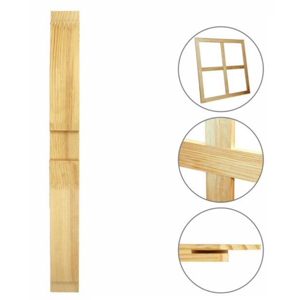 Планка середня для перемички ROSA застосовується для укріплення підрамників великих розмірів. Виготовляється з високоякісного міцного матеріалу – клееної сосни. Перемичка скріплює протилежні сторони підрамника, що запобігає його деформуванню.