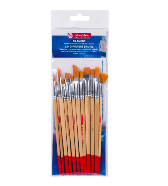Ці 12 поліефірних пензлів можуть поглинати багато води, що робить їх придатними для сильно розбавлених фарб, таких як акварельні та чорнильні. Набір містить пензлі різних форм, кожен з яких створює різні ефекти або мазки.