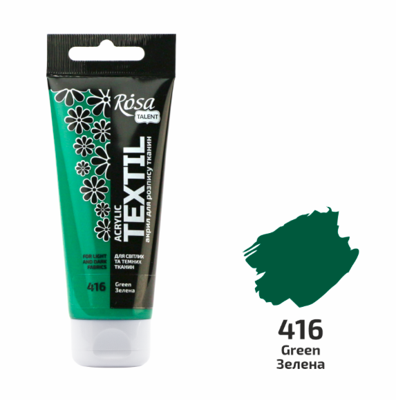Фарби для тканин ROSA Talent – високопігментовані акрилові фарби на водній основі призначені для розпису світлих та темних тканин різного складу, в тому числі шкіри і замші.