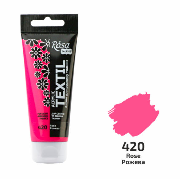 Фарби для тканин ROSA Talent – високопігментовані акрилові фарби на водній основі призначені для розпису світлих та темних тканин різного складу, в тому числі шкіри і замші.