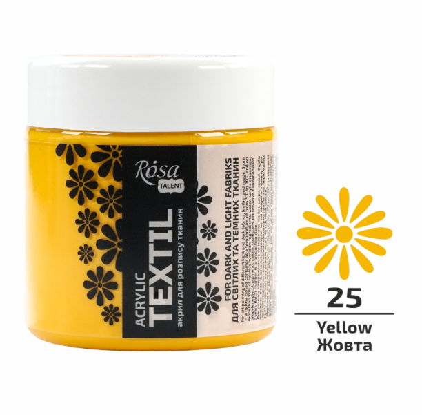 Фарби для тканин ROSA TALENT – високопігментовані акрилові фарби на водній основі призначені для розпису світлих та темних тканин різного складу, в тому числі шкіри і замші.