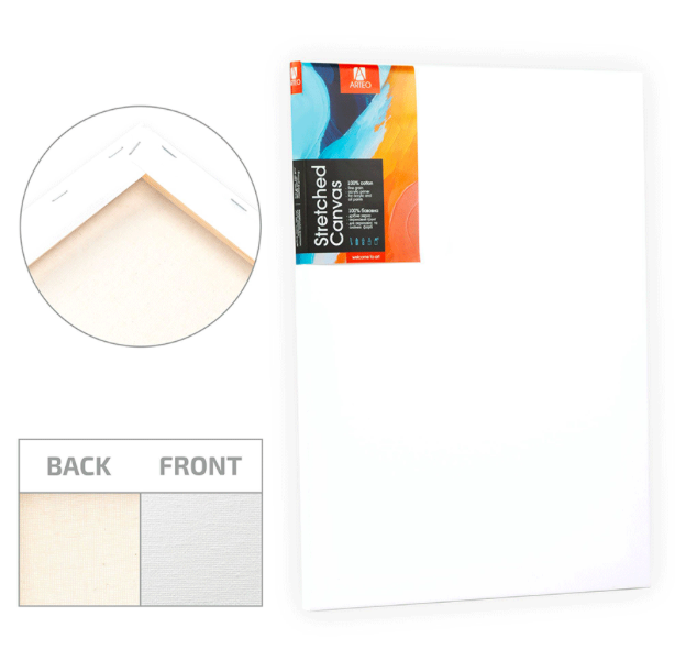 Полотно на підрамнику ARTEO виготовлене зі 100% натуральної бавовни щільністю 280 г/м² не провисає та зберігає ідеальний натяг. Еластичний акриловий ґрунт та дрібне зерно полотна забезпечують легке нанесення фарби, дозволяють виконати як детальні, так і фактурні мазки.
