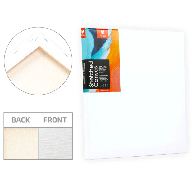 Полотно на підрамнику ARTEO виготовлене зі 100% натуральної бавовни щільністю 280 г/м² не провисає та зберігає ідеальний натяг. Еластичний акриловий ґрунт та дрібне зерно полотна забезпечують легке нанесення фарби, дозволяють виконати як детальні, так і фактурні мазки.