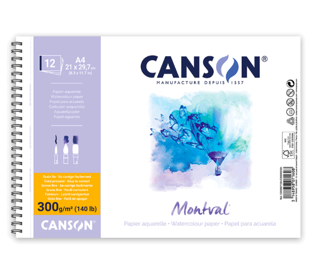 Папір серії Montval був розроблений живописцем Гаспаром Майолем, племінником скульптора Арістида Майоля, вироблений ТМ Canson® на його запит на початку ХХ століття. Папір виготовлений зі 100% високоякісної целюлози білого відтінку. Дана серія паперу не містить кислот та відбілювачів, а також стійкий у використанні. Папір підходить для всіх "мокрих" технік: акварелі, гуаші, акрилової фарби.