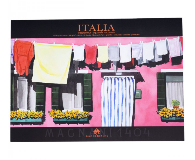 Блок з італійського акварельного паперу – 100% БАВОВНА – 300 грамів – Холодного пресування – Цей престижний акварельний папір виготовляється традиційними методами на циліндричних барабанних пресах. Це один з акварельних паперів з найдовшою історією виробництва, який користується бездоганною репутацією серед акварелістів. Цей 100% бавовняний, безкислотний папір виготовлений з найчистіших квіток бавовни. Він подвійно скріплений внутрішньо та зовні синтетичним еквівалентом желатину, без використання речовин тваринного походження. Його безкислотність гарантує стійкість до старіння. Завдяки міцному зв'язку та використанню бавовни в її первозданному вигляді, він надзвичайно добре витримує всі корекції та видалення фарби, а також поглинає велику кількість води, не деформуючись. Рекомендується для акварелі, темпери, гуаші, чорнила та акрилу.