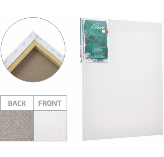 Якісний акриловий грунт ідеально підходить до будь яких видів фарб, а модульний підрамник що розклинюється (19х45мм) дозволить легко регулювати натяжку полотна. Тонований зворотній бік надає полотну вишуканого вигляду.