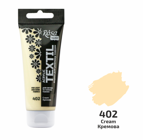 Фарби для тканин ROSA Talent – високопігментовані акрилові фарби на водній основі призначені для розпису світлих та темних тканин різного складу, в тому числі шкіри і замші.