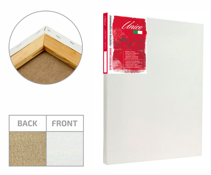 Середньозернисте полотно (335 г/м2) ідеальне для робіт виконаних як з допомогою пензля так і мастихіна.