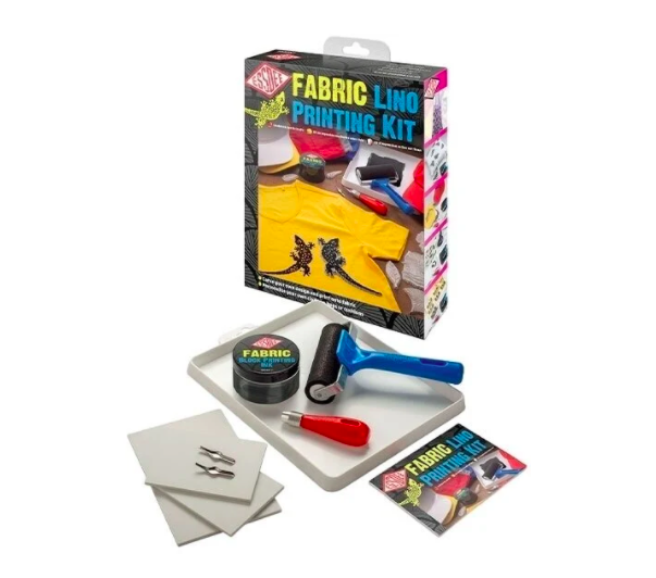 Набір для друку на тканині з лінолеумом включає всі необхідні інструменти та матеріали для різання лінолеуму, необхідні для створення власних дизайнів та друку їх на тканині. Блоки для різьблення MasterCut, різаки для лінолеуму, фарба для друку на тканині та унікальний валик для тканини були спеціально підібрані або розроблені, щоб зробити друк на тканині цікавим, креативним та успішним заняттям, яким може насолоджуватися кожен.