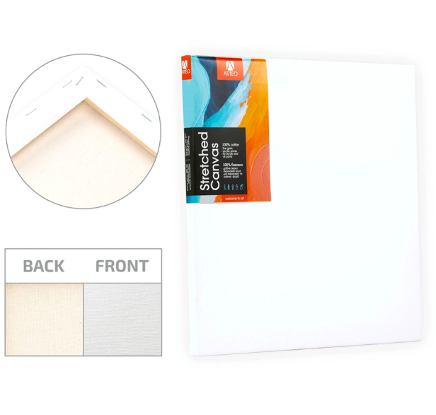 Полотно на підрамнику ARTEO виготовлене зі 100% натуральної бавовни щільністю 280 г/м² не провисає та зберігає ідеальний натяг. Еластичний акриловий ґрунт та дрібне зерно полотна забезпечують легке нанесення фарби, дозволяють виконати як детальні, так і фактурні мазки. Завдяки галерейній натяжці, коли скоби розміщені на звороті підрамника створюється ефект безрамкового зображення, що дозволяє розмістити картину в декорі відразу після висихання фарб, не турбуючись про раму. Модульний підрамник, виготовлений з міцної якісно висушеної клеєної деревини, добре тримає форму. Полотна на підрамнику виготовляються в розмірах від 15х15см до 80х100 з інтервалом в 5см.